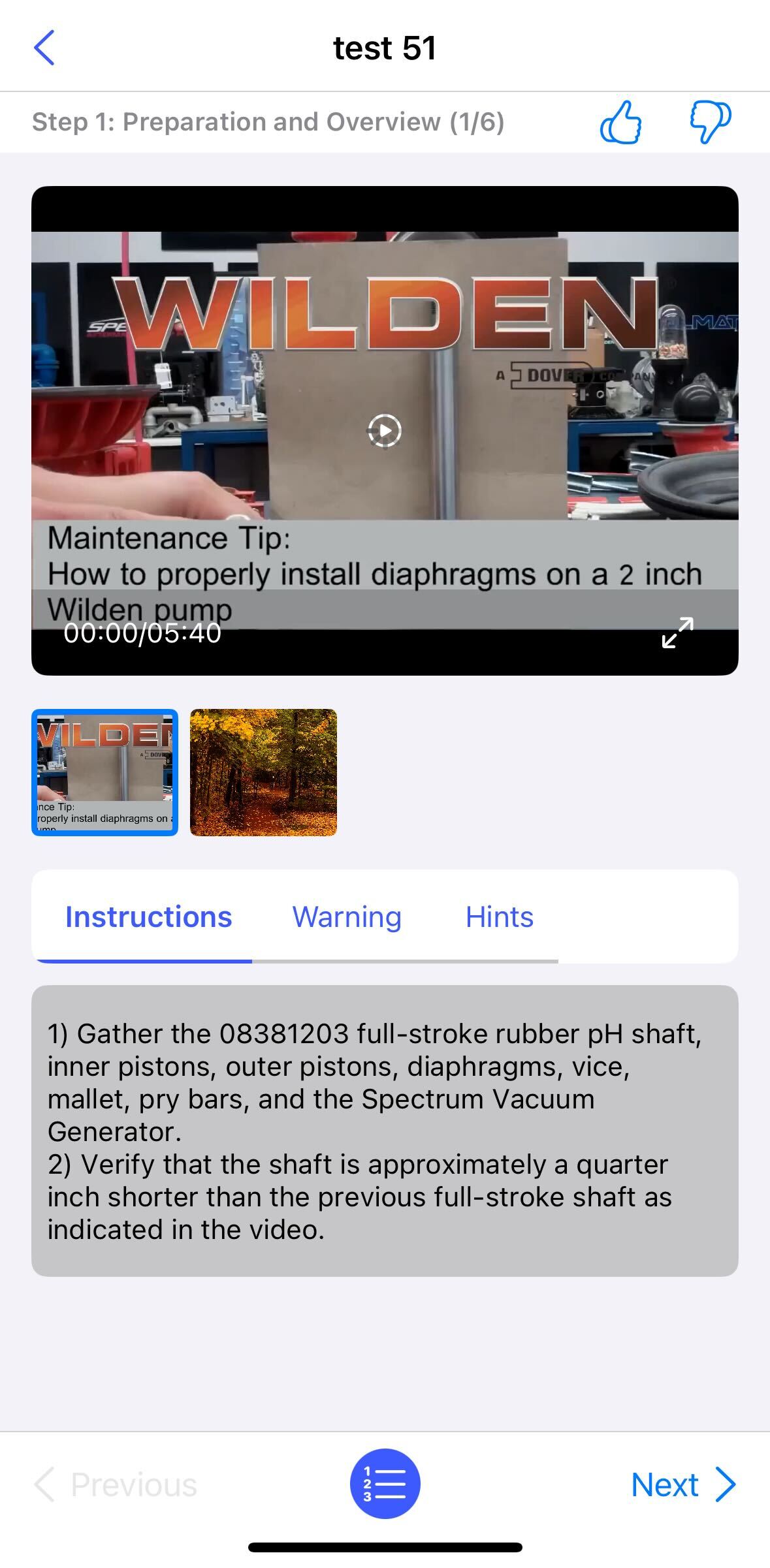 - Steps: Tap on a step to view instructions and other details, such as hints, warnings, feedback, and other relevant information.