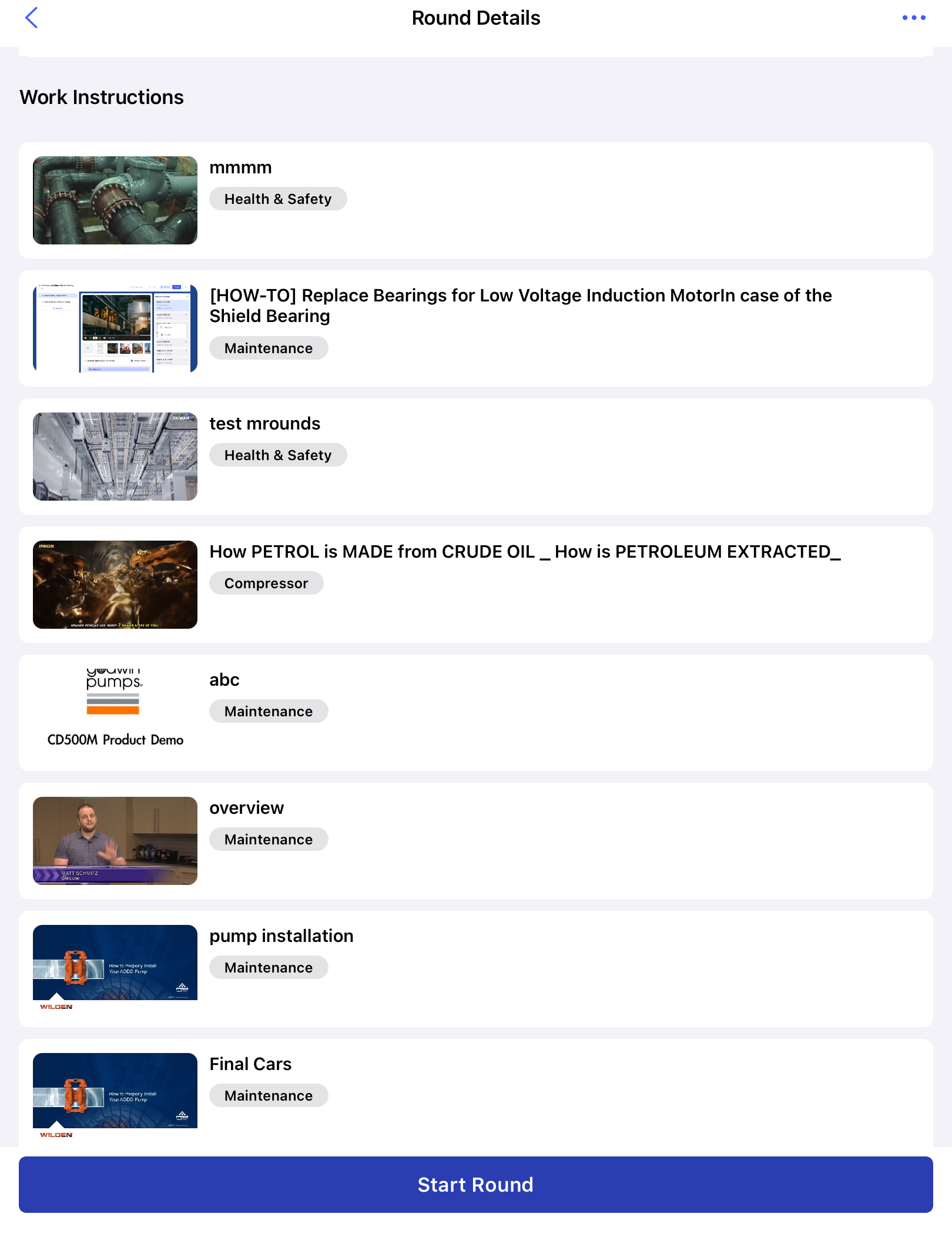To access the work instructions at the round level: