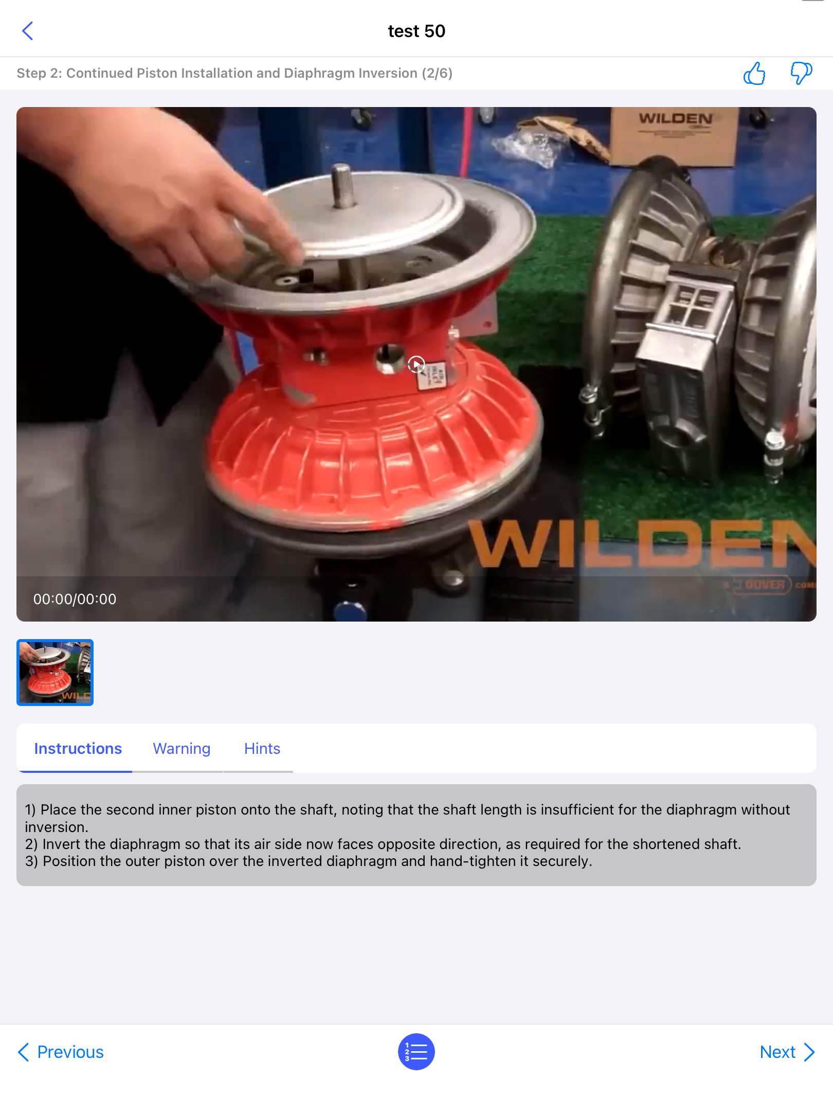 Note:Tap on the Star icon at the top right corner to favourite a set of instructions. - Tap on a step to view detailed instructions, as well as any warnings, hints, or feedback, if available.