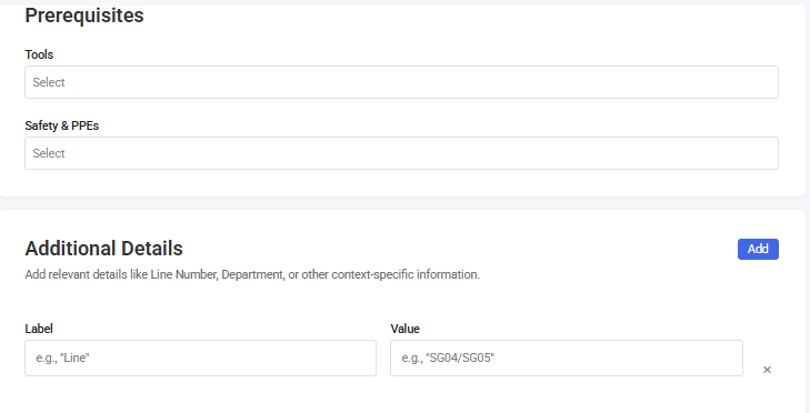 - In the Prerequisites section, list all required Tools (e.g., "Torque wrench, 10-150 ft-lbs") and Safety & PPEs (protective gear, e.g., "Cut-resistant gloves") including the ones that weren't explicitly mentioned in the video.