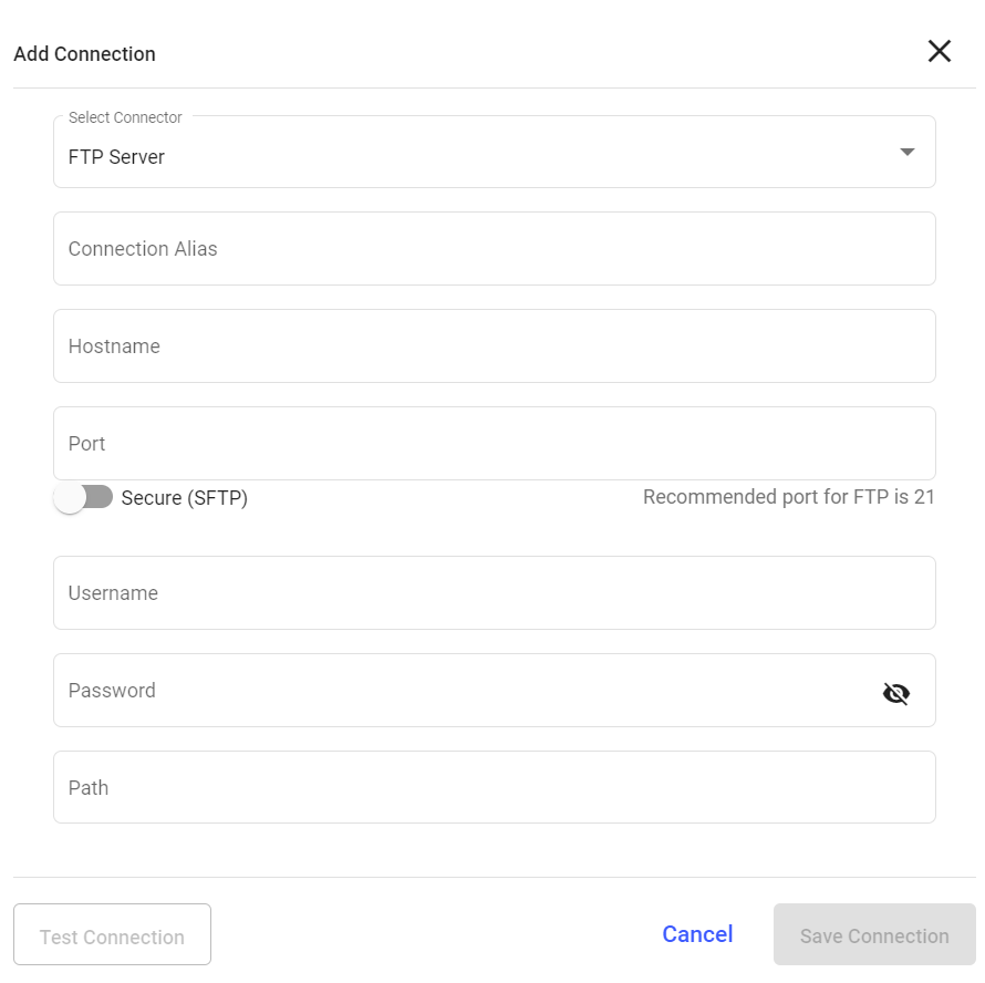 - Select FTP Server from the Select Connector drop-down.