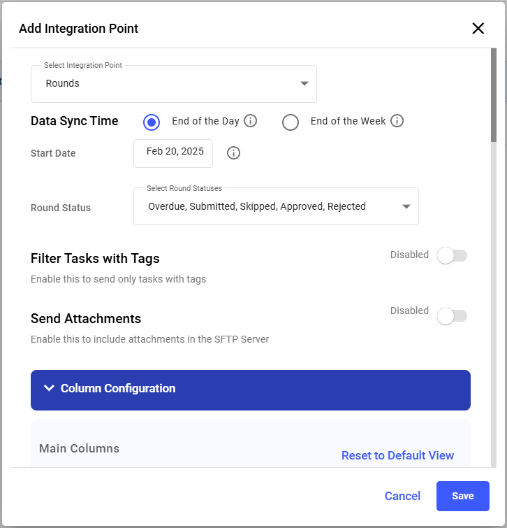 - Select the integration point (Rounds) from the Select Integration Point drop-down.
