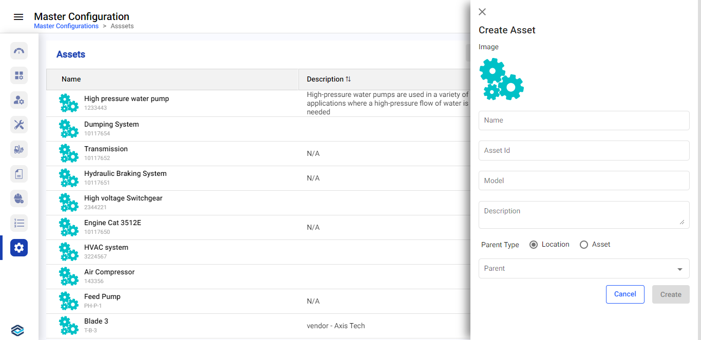 Assets refer to machines, equipment, or infrastructure that require maintenance and monitoring. By creating assets in the system, you can assign maintenance tasks, track maintenance history, and monitor performance. Each asset can be linked to a specific plant and location, ensuring organized asset management.