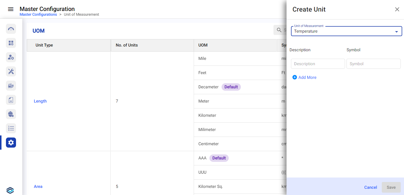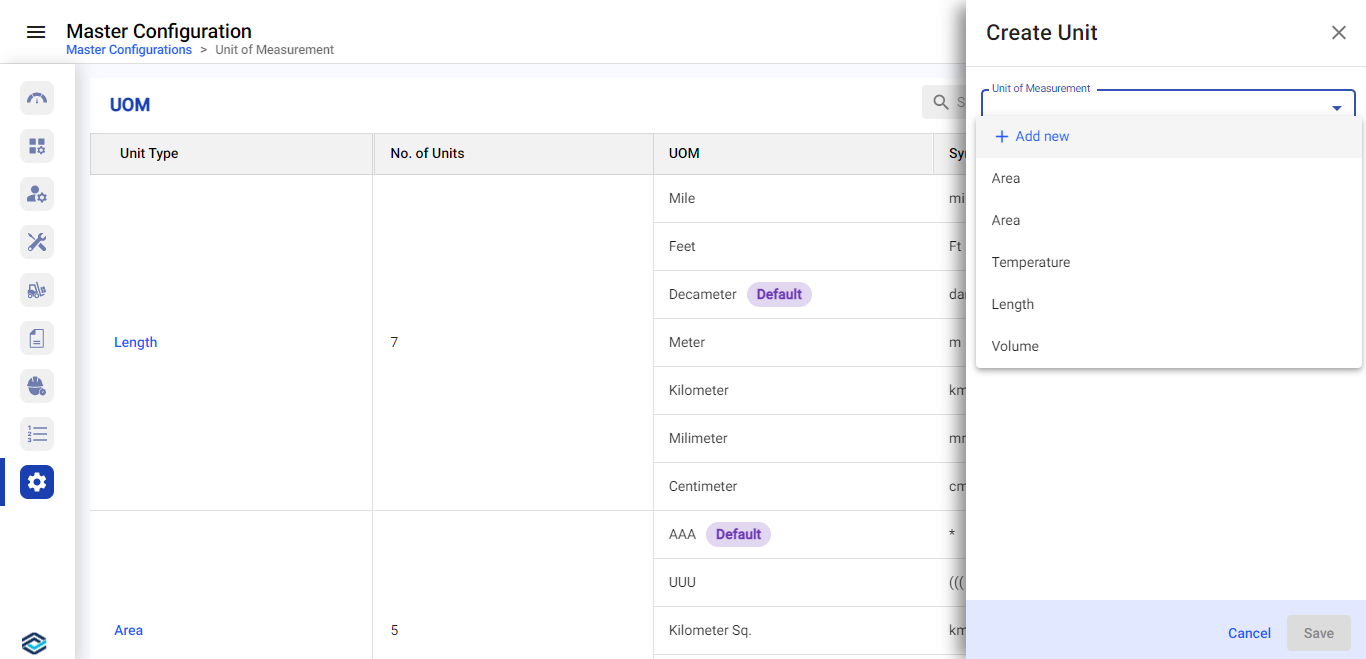Note:If the measurement that you need is not present in the list, click +Add New and enter Unit Type. -