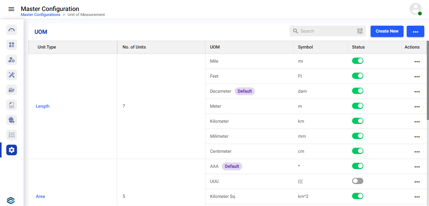Note:- To download the UOM template, in the UOM screen, click the More icon (next to Create New) and select Download Template.