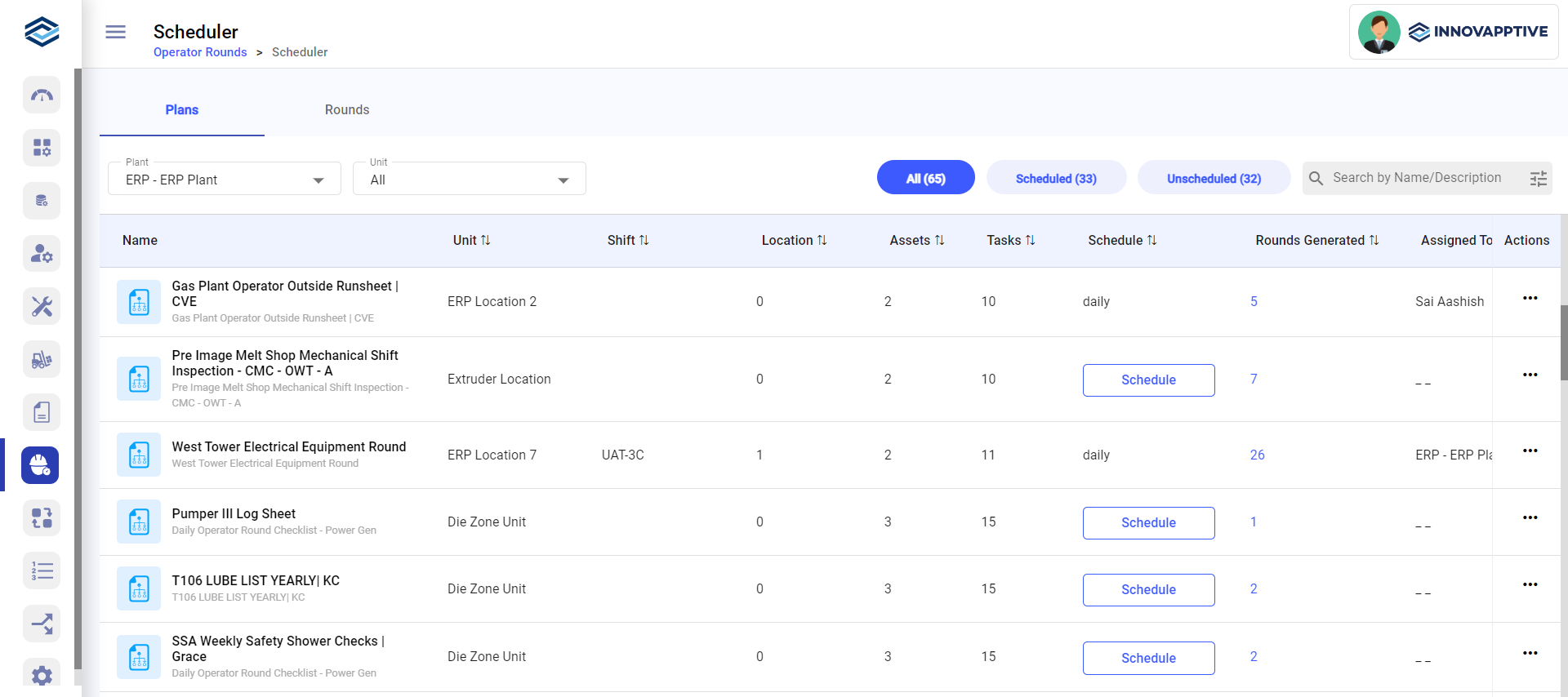 - Expand the Operator Rounds module and click Scheduler on the left-side pane.