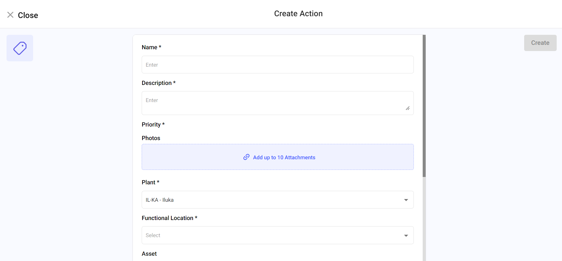 - Select the Plant, Unit, Functional Location, and Asset values from the respective dropdowns.