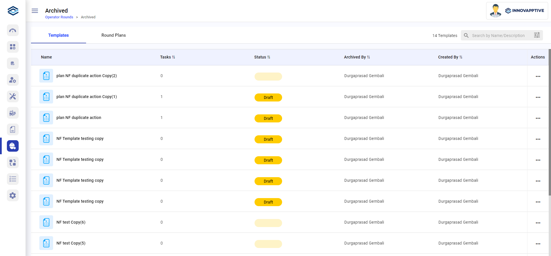 Archive round templates when they are no longer required for asset maintenance. You can also restore archived templates or delete them.
