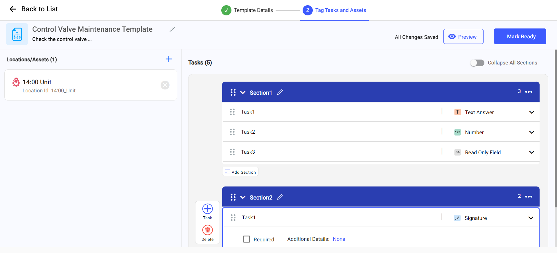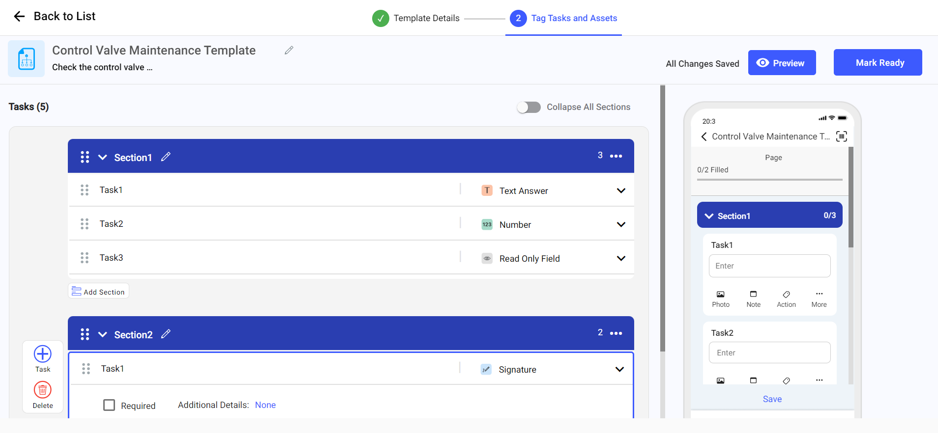 - Click Mark Ready to save the template.