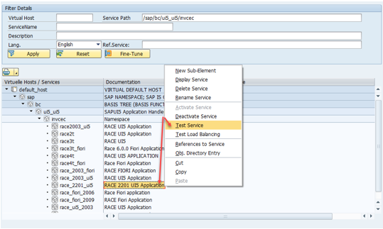 2. Filter Technical Service Name with /INV* to view the Innovapptive specific services.