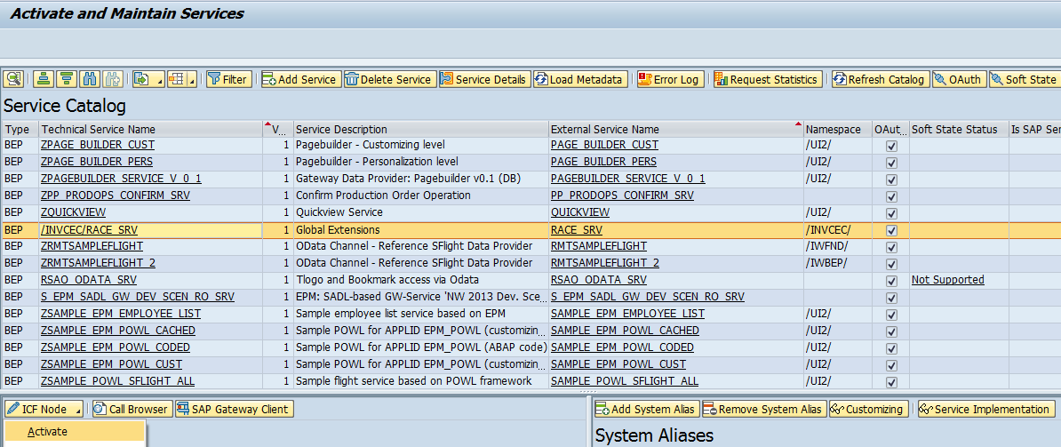 - Navigate to the transaction /IWFND/MAINT_SERVICE.