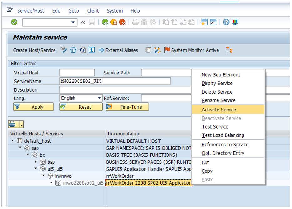 Activate UI5 Service
