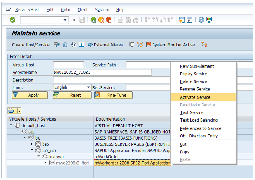 Activate FIORI Service