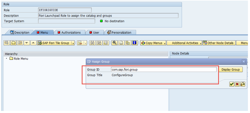- Log on to Gateway SAP system and call the transaction PFCG.