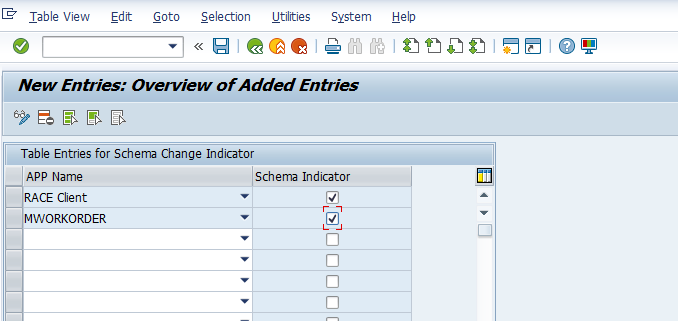 - Select RACE™ Client and mWorkOrder from App Name drop-down and select Schema Indicator checkbox.