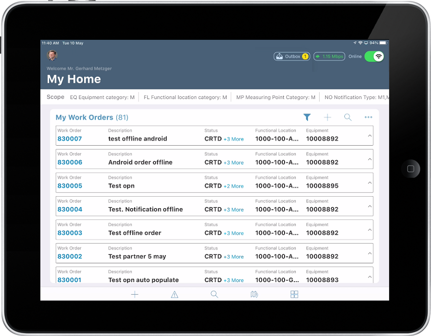 - Tap the Work Order Number (hyperlink) and navigate to the details screen.