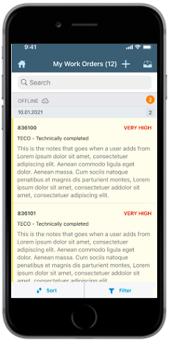 - You can edit notifications, work orders, time sheets, and Measuring Documents that are created in offline mode.