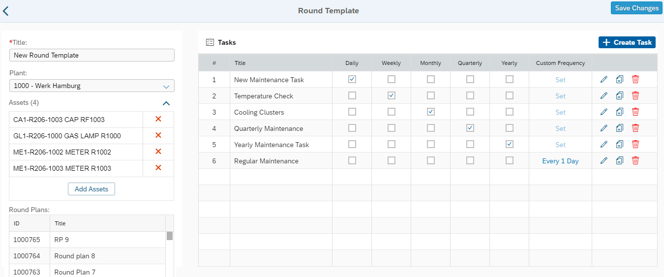You can create Asset Maintenance Task Templates which can be used to create Asset Maintenance Tasks quickly. For example, a template Monthly Maintenance Tasks can be created. When supervisors need to create tasks for checking temperatures, they can use the Monthly Maintenance Tasks template and create an operator round for Asset Maintenance Task.