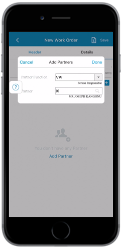Note:You can edit the details of a partner in the same screen only when it is in created and released state; not when the service order is completed.