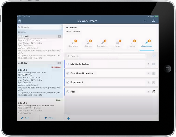 Orders, Functional Location, Equipment, Product Resource Tools (PRTs), and Notifications