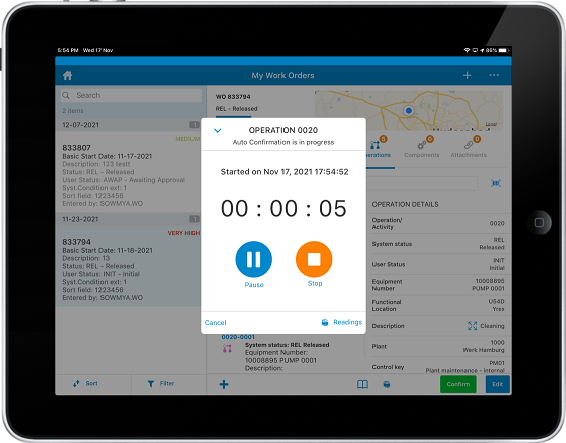 - In the right section of the My Work Orders screen, tap the Operations tab.