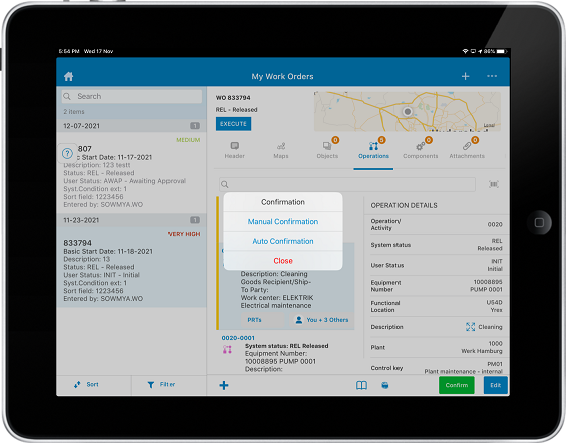 - Tap Confirm in the Operation Details.