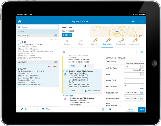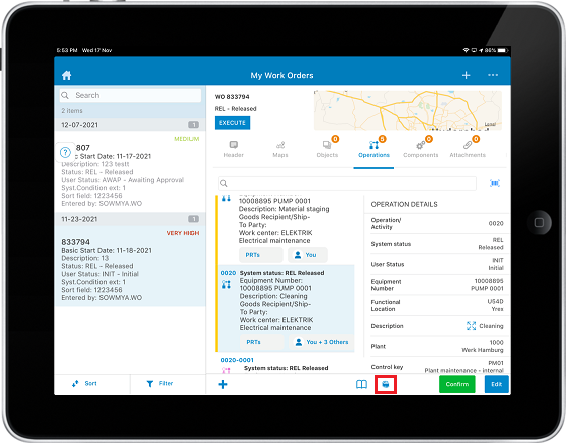 - In the right section of the My Work Orders screen, tap the Operations tab.