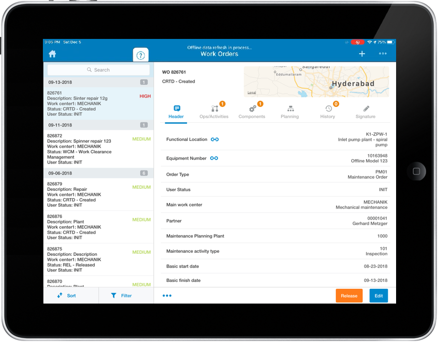 Once a Work Order is created, it is assigned to a person/group/team. The person/group/team must then acknowledge their acceptance by releasing the Work Order. Work orders must be released before they are processed by the field technicians. Before you release a work order, check the history of work orders for the equipment or functional location.