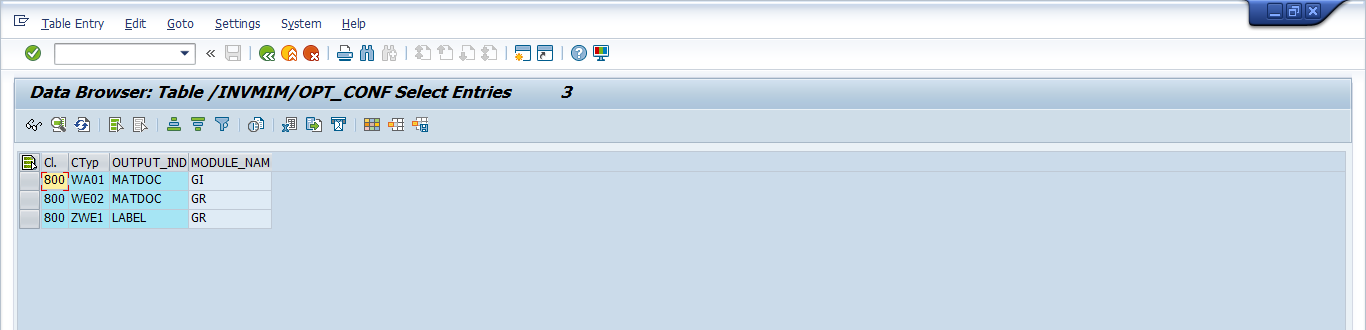 - Enter table /INVMIM/OPT_CONF using SM30 transaction.