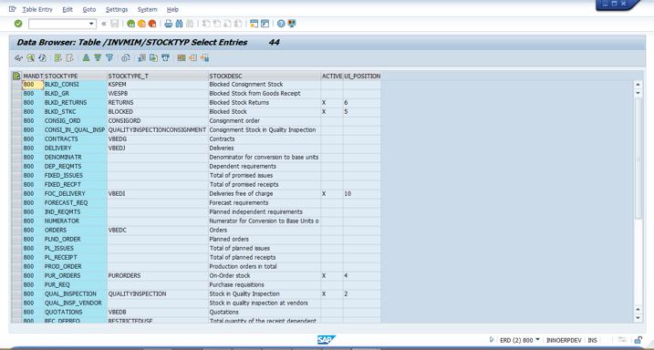 - Enter table /INVMIM/STOCKTYP using SM30 transaction.