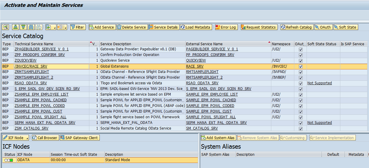 Once add-on and support packs are installed, activate RACE™ and mInventory OData Services.