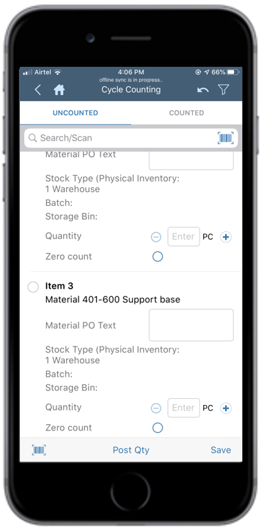 - Tap Save to store the Count on the device if you are not connected to the network. This value is posted once you are connected to the network.