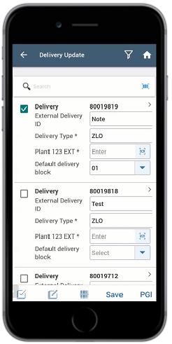 - Update the delivery document details like External Delivery Note (field to add comments), Delivery Type, Plant 123 EXT.