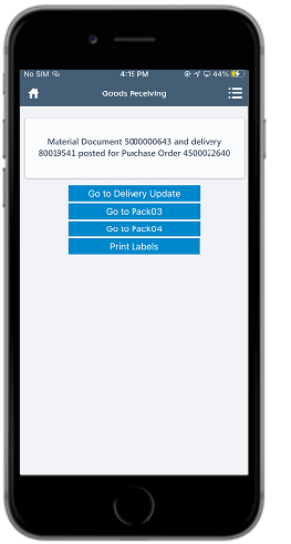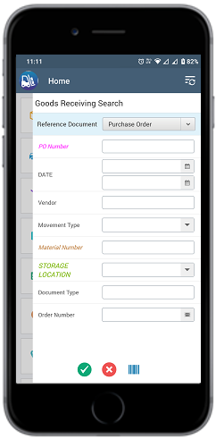 - In the Home screen, tap Goods Receiving.