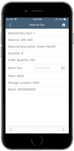 - In the Home screen, tap Material Document Display.