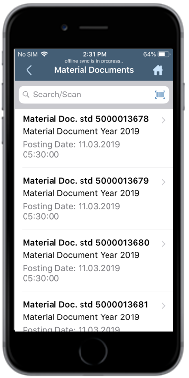 Alternatively, tap Search without any search criteria to display the list of material documents.
