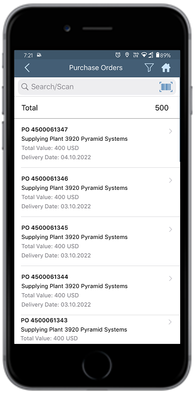 - In the Home screen, tap the Purchasing module.