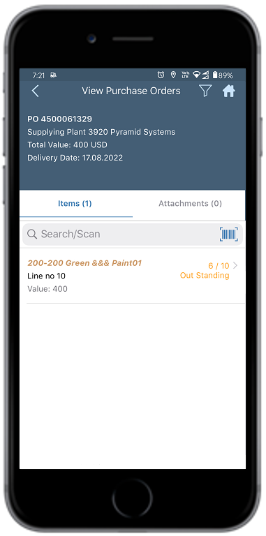 In the View Purchase Orders screen, select the line item under the