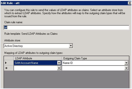 - Claim rule name: Issue SAMAccountName as Name ID.