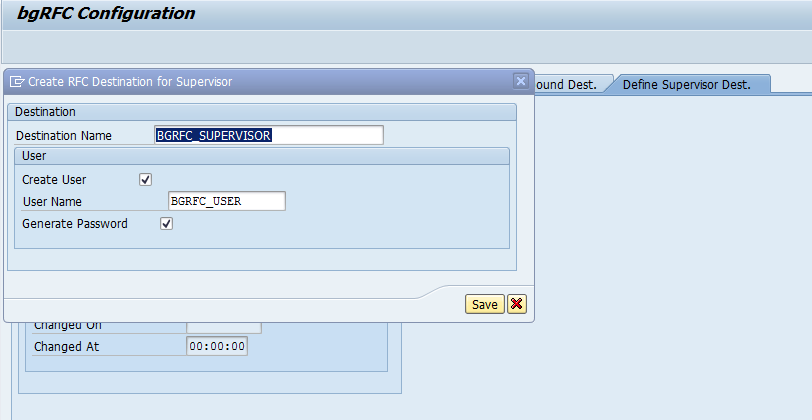 - In the Destination Name field, enter BGRFC_SUPERVISOR.
