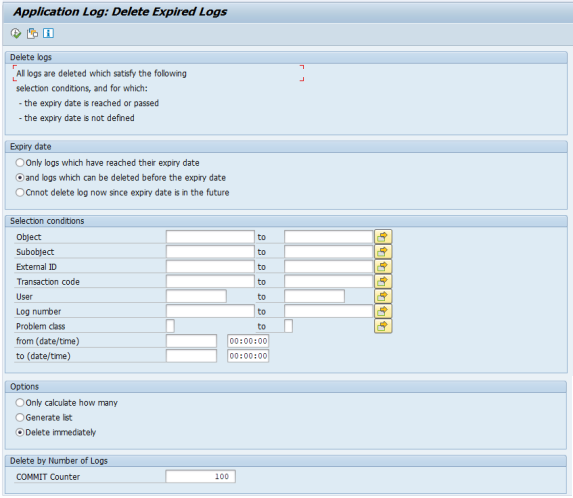 To delete application log entries: