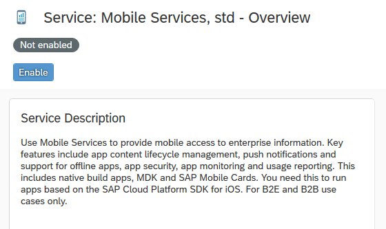 Enable mobile services, if you are logging into SAP BTP for the first time.